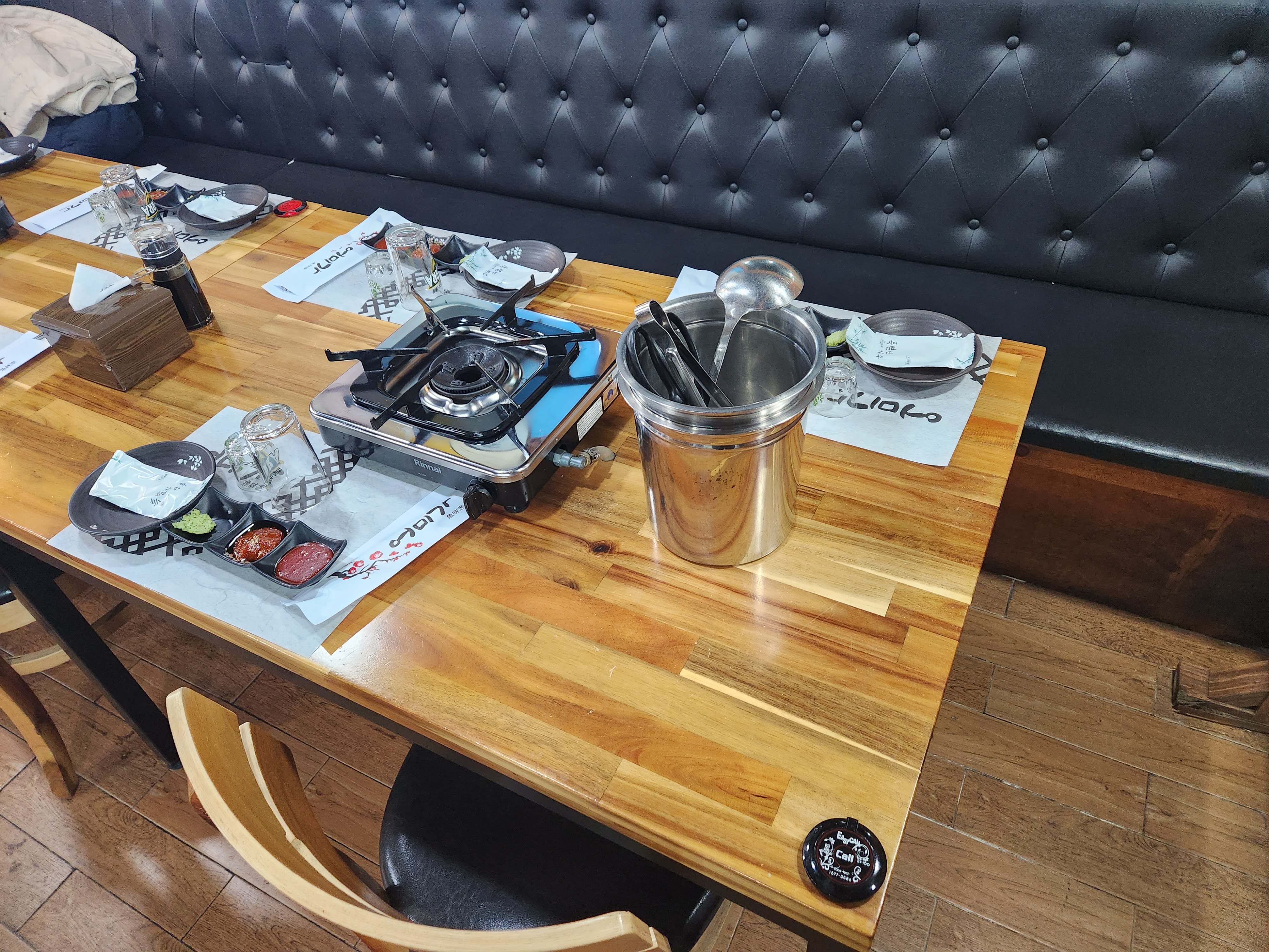 내부 식탁은 전부 입식테이블로 되어있었고, 홀뿐만 아니라 룸도 구비되어있었습니다. 저는 홀에서 식사를 했습니다.