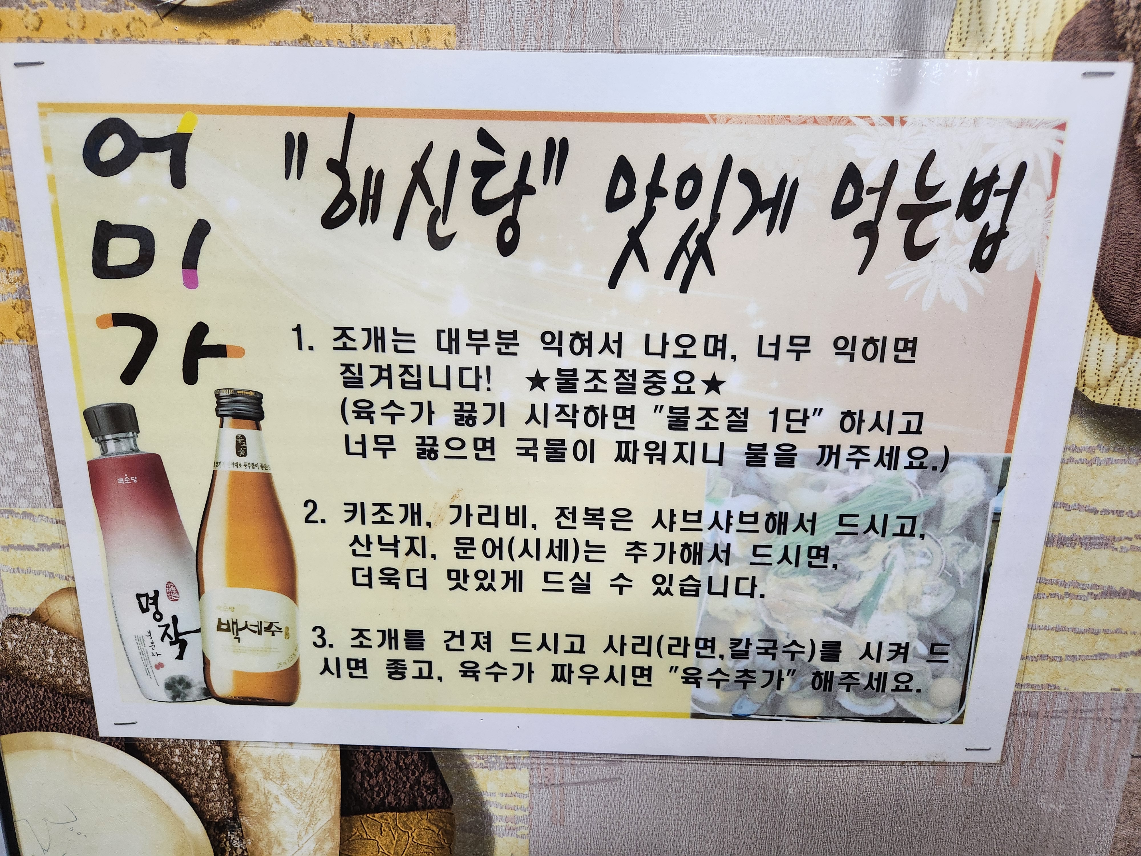 참고로 해신탕은 요렇게 먹으면 좋답니다. ㅎㅎㅎ 밑반찬 먹고 이런거 구경하다보니 금방 메인 메뉴가 나오더라고요.